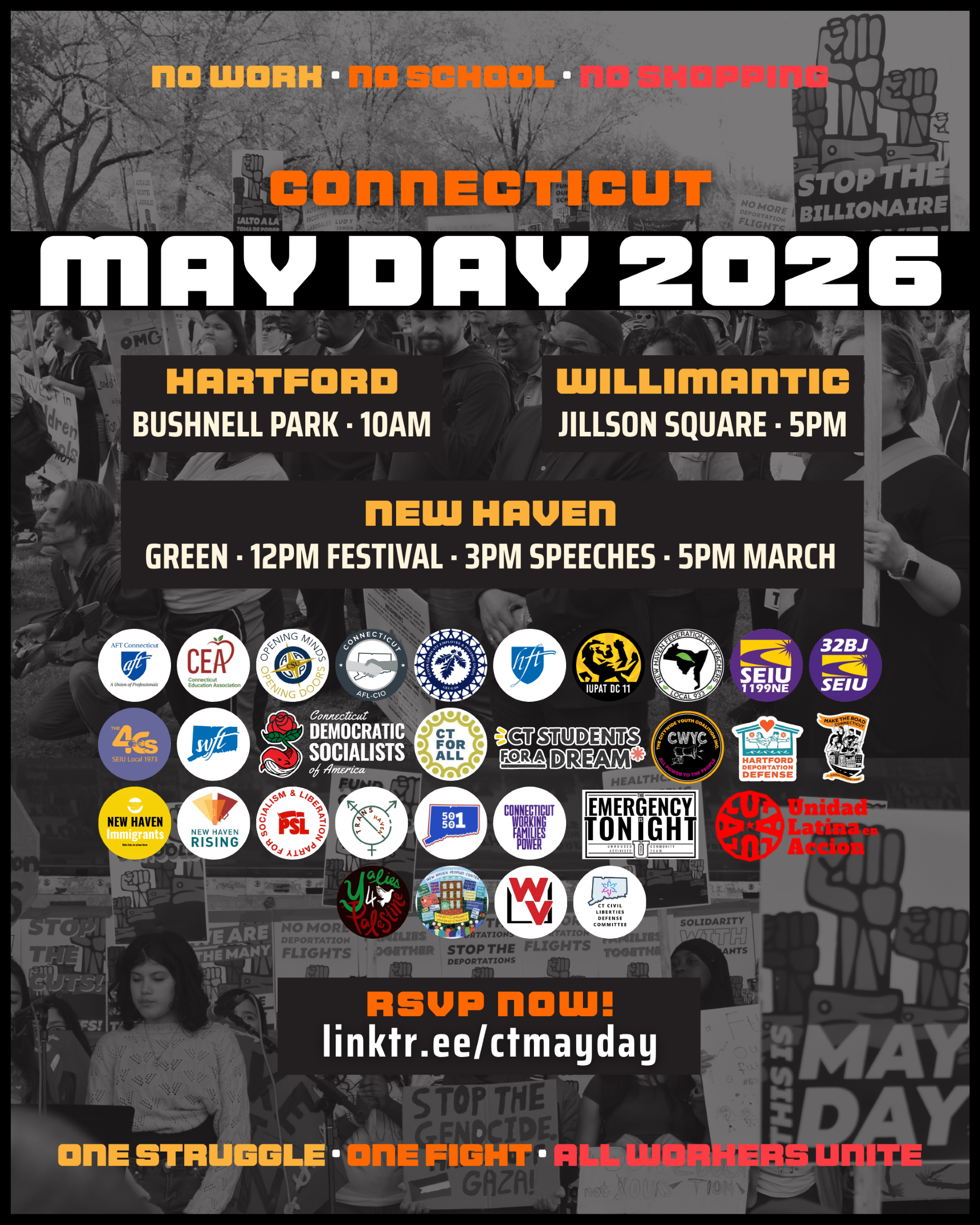 Únete a nosotros en el New Haven Green el 1 de mayo para nuestro Día de Acción de IUPAT